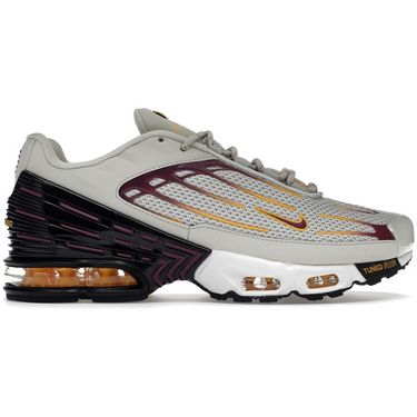 Nike Air Max Plus 3 “Summer Nights” (Light Bone / Viotech / University Gold) udtrykker en sommerlig og levende stil med en lys base og kontrastdetaljer i guld og lilla. Overdelen består af mesh og syntetiske materialer for åndbarhed og letvægt, mens TPU-overlays skaber struktur og visuel dybde. Den klassiske Air-teknologi med synlige luftkamre i hæl og forfod giver komfort og affjedring til både hverdag og aktiv brug. Sammensætningen af lyse og accentfarver giver skoen et frisk udtryk, som passer godt til sommerlooks og moderne streetwear.