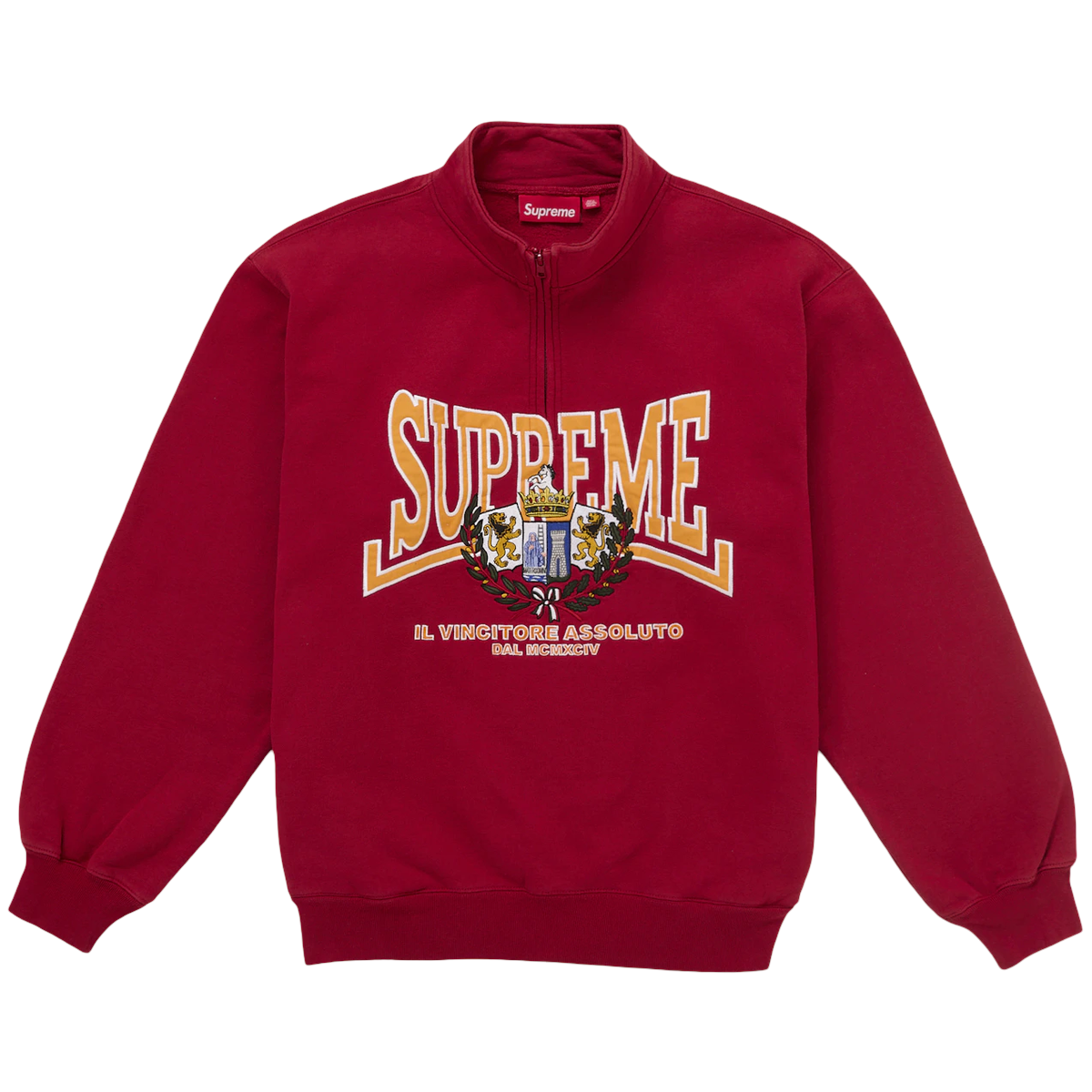 Supreme Crest Applique Half Zip Pullover Red